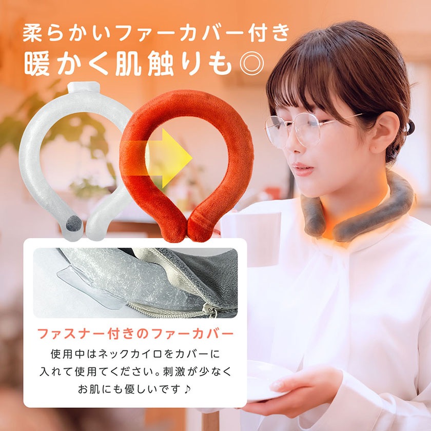 ネック カイロ ネック リング 加熱 ネックラップ ファーカバー付き 温感 温活 ぽかぽか 防寒 カイロ 首用 あったか 繰り返し使用可能
