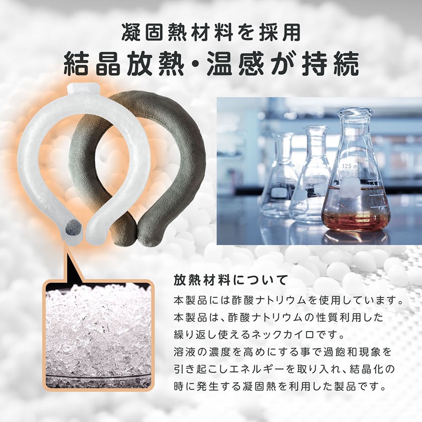 ・【凝固放熱材料を採用】本製品は溶液の濃度を高めにする事で過飽和現象を引き起こしエネルギーを取り入れ、結晶化の時に発生する凝固熱を利用した製品です。