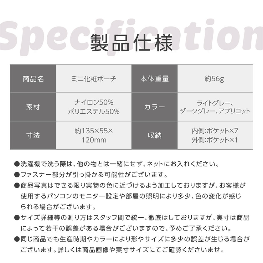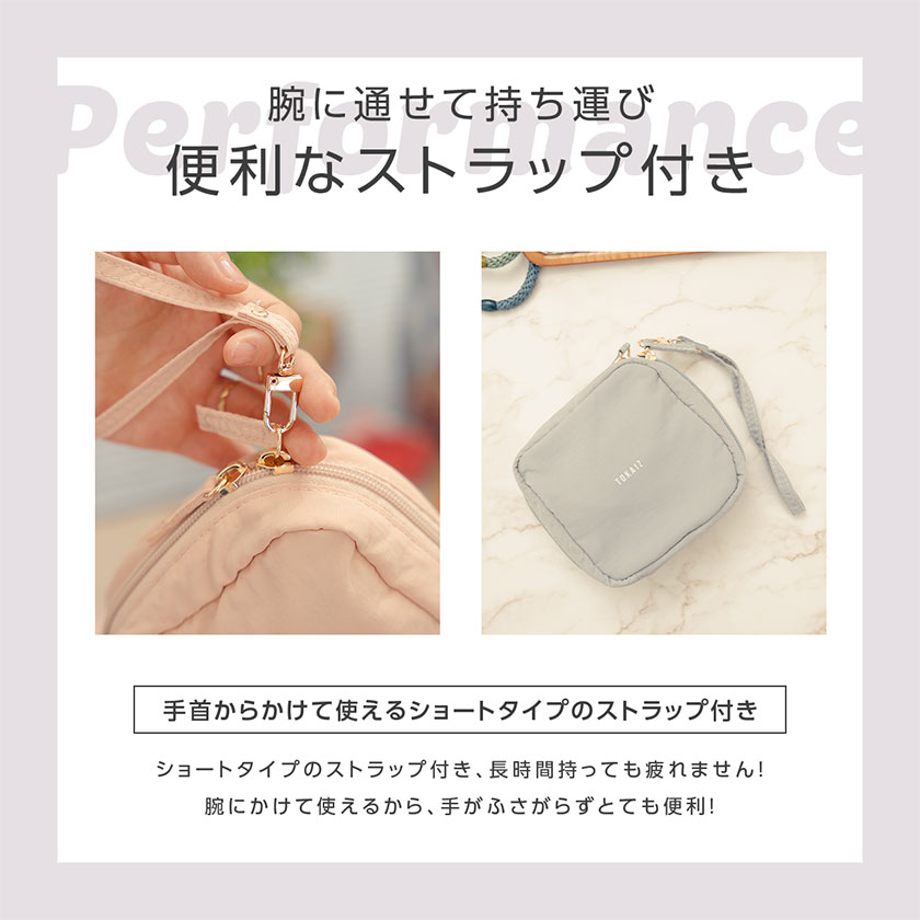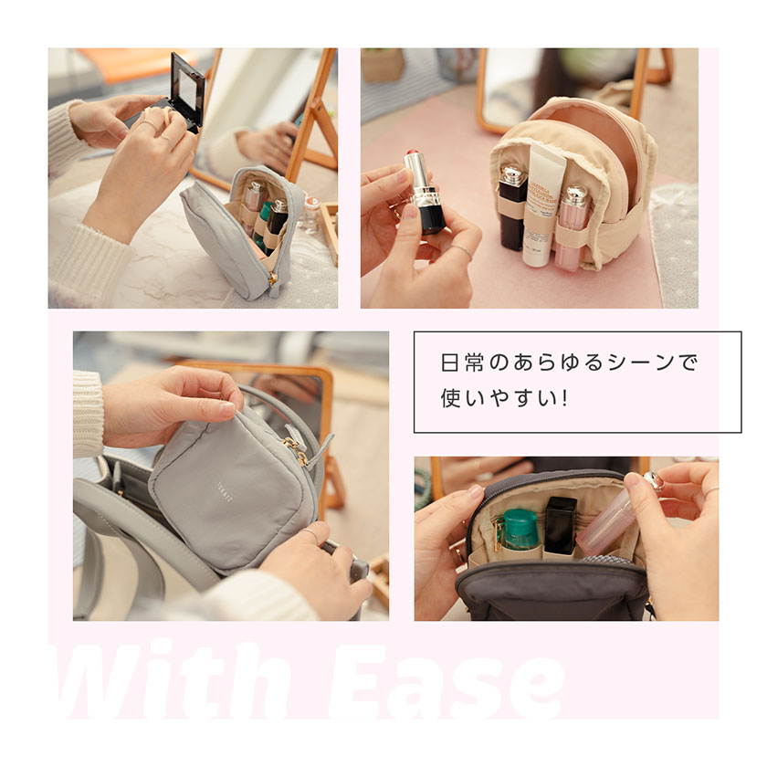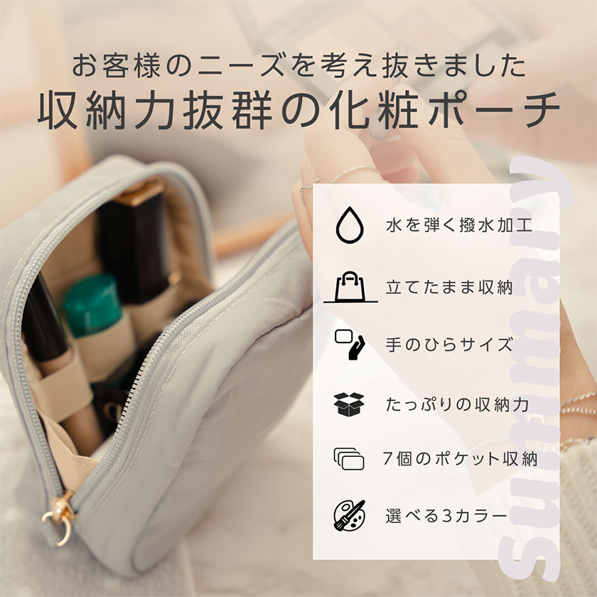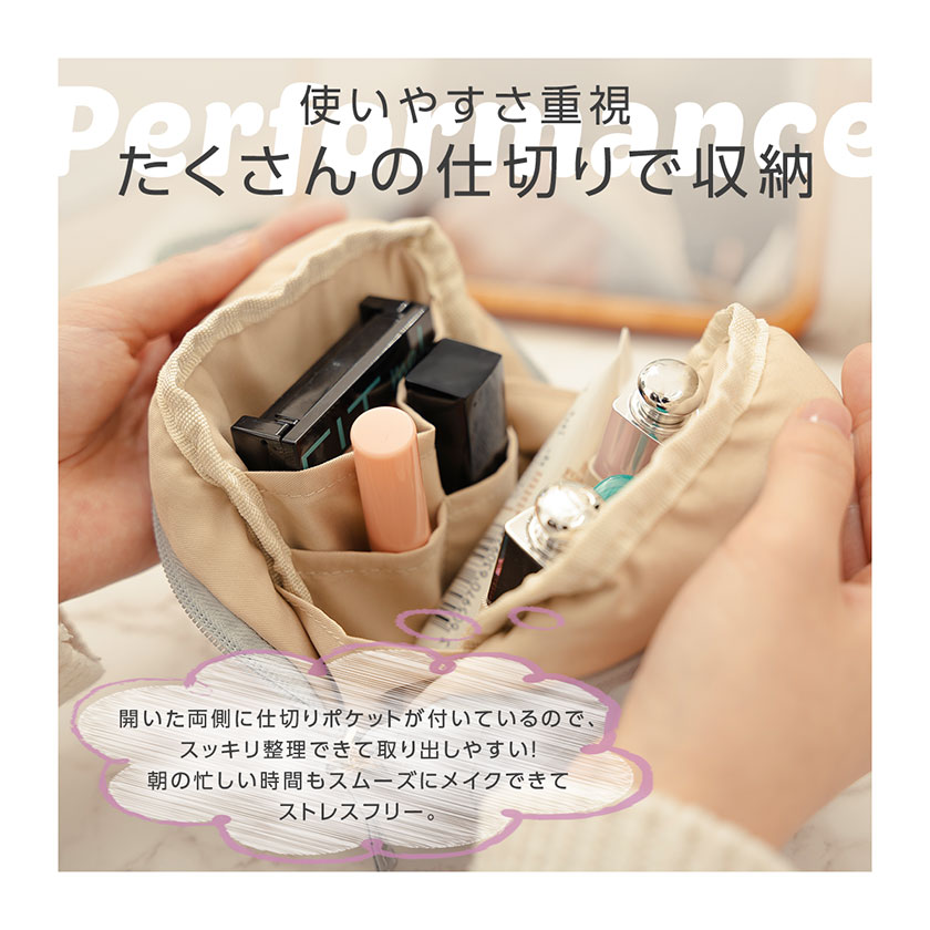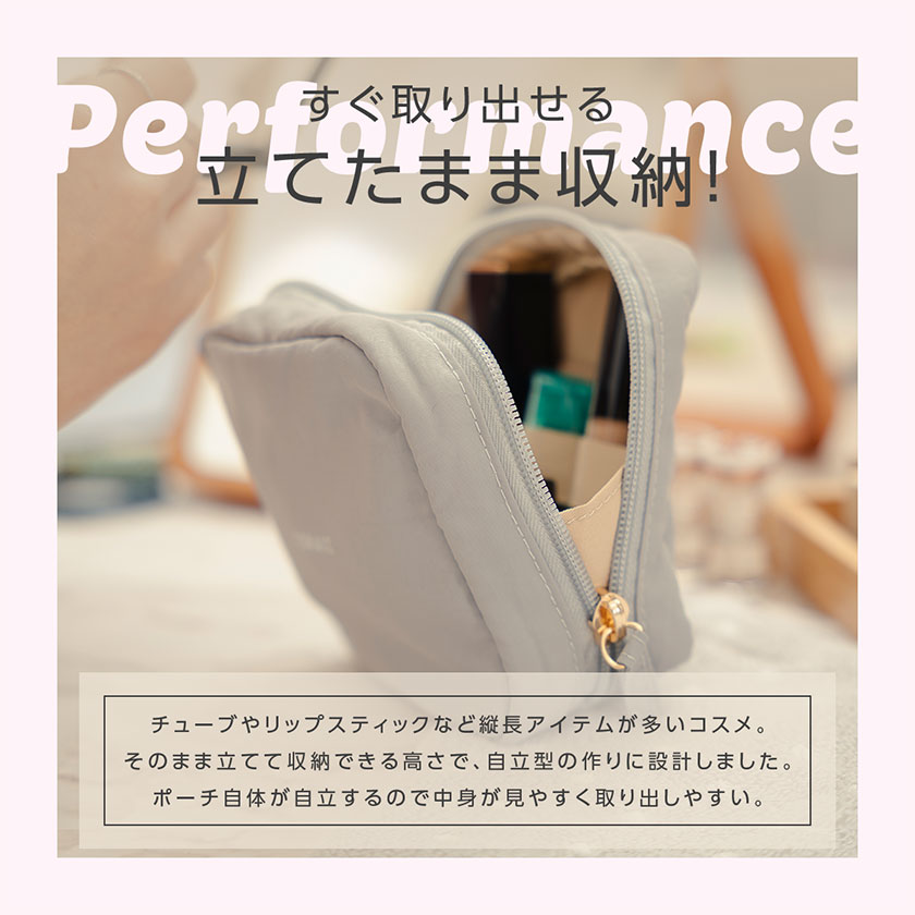- ・【立てたまま収納!】そのまま立てて収納できる高さで、自立型の作りに設計しました。ポーチ自体が自立するので中身が見やすく取り出しやすい。