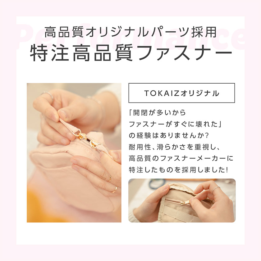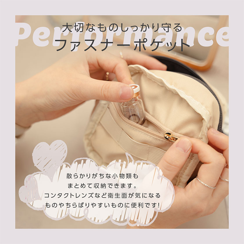 ・【ファスナーポケット】散らかりがちな小物類もまとめて収納できます。コンタクトレンズなど衛生面が気になるものやちらばりやすいものに便利です!