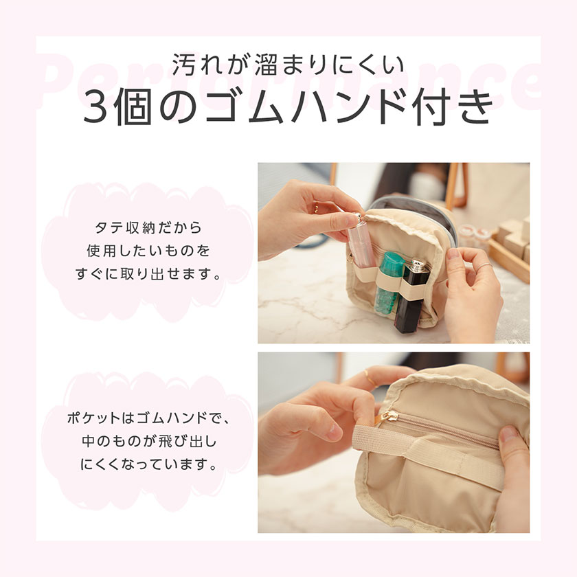 ・【3個のゴムハンド付き】ポケットはゴムハンドで、中のものが飛び出しにくくなっています。