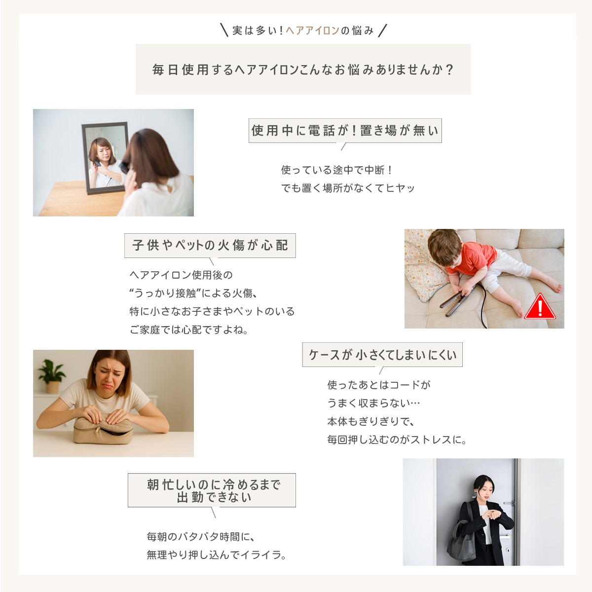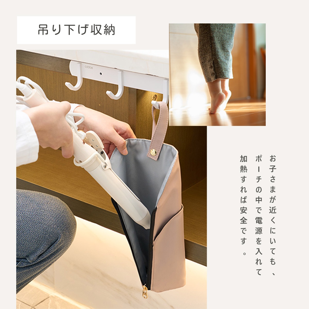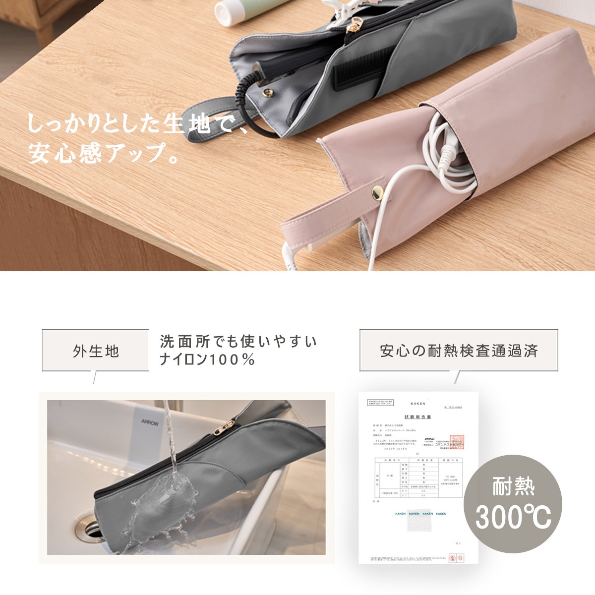 ・【300度耐熱生地を採用】ヘアアイロンの加熱待ちや使用中も、そのままポーチに収納可能。使用後もすぐに収納できるので、子供がいても安心です!