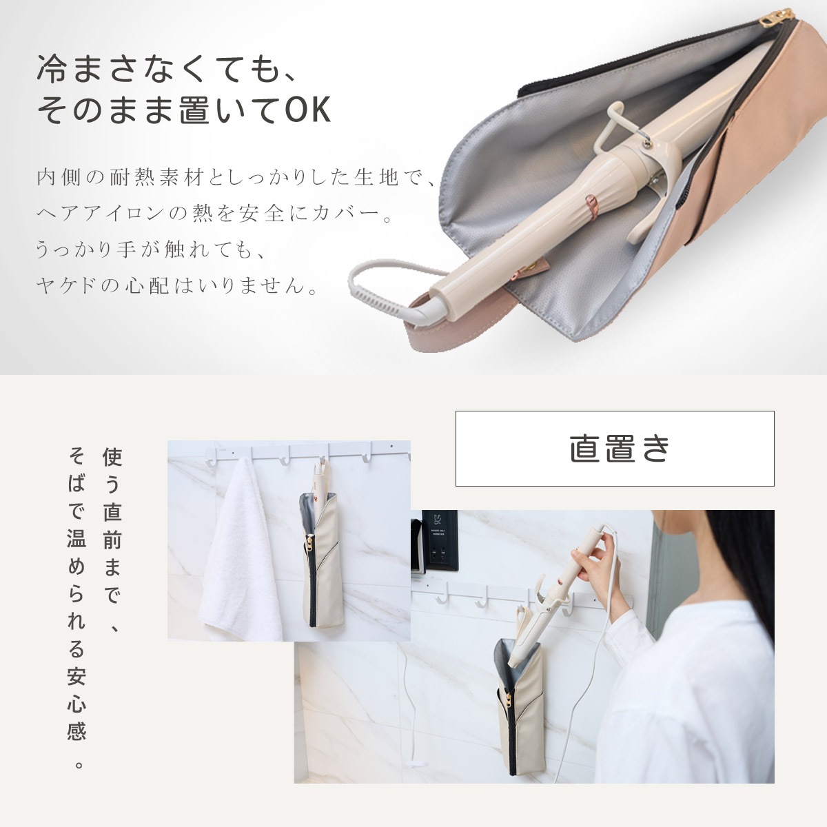 ・【熱いまますっぽり入れられる】ヘアアイロンが熱いうちでも直接ポーチに収納できるので、冷まさずにすぐに収納できます!