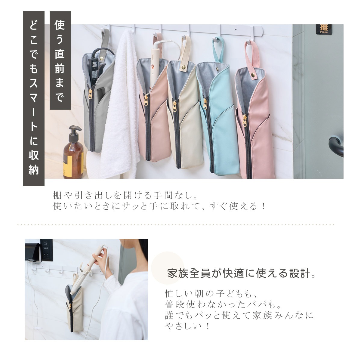 ヘアアイロンケース 熱いまま マチ付き 吊り下げ ヘアアイロンポーチ 旅行 トラベル 収納 持ち運び 耐熱 ヘアアイロンホルダー かわいい コテ入れ 電源コード用ポケット付き 美容家電 TOKAIZ トカイズ