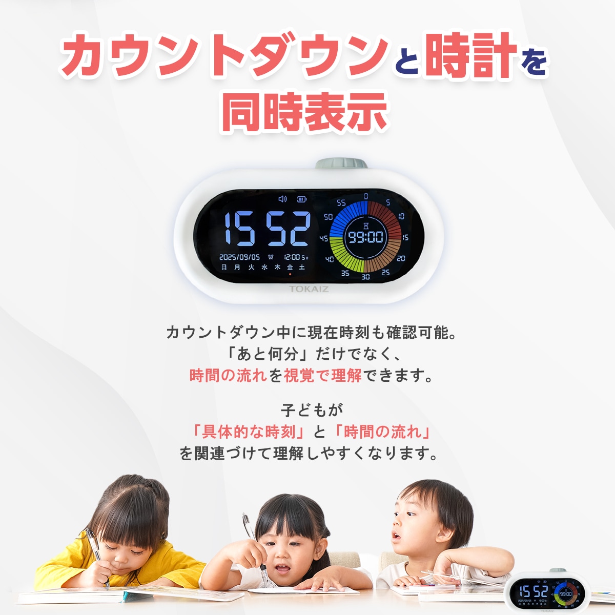 TOKAIZ多機能学習タイマー カウントダウン カウントアップ 目覚まし時計 デジタル時計 デジタルビジュアルタイマー アラームスヌーズ機能 勉強タイマー type-c充電式 日付/曜日/アラーム 時間の学習 子供 小学生 TLT-001 トカイズ