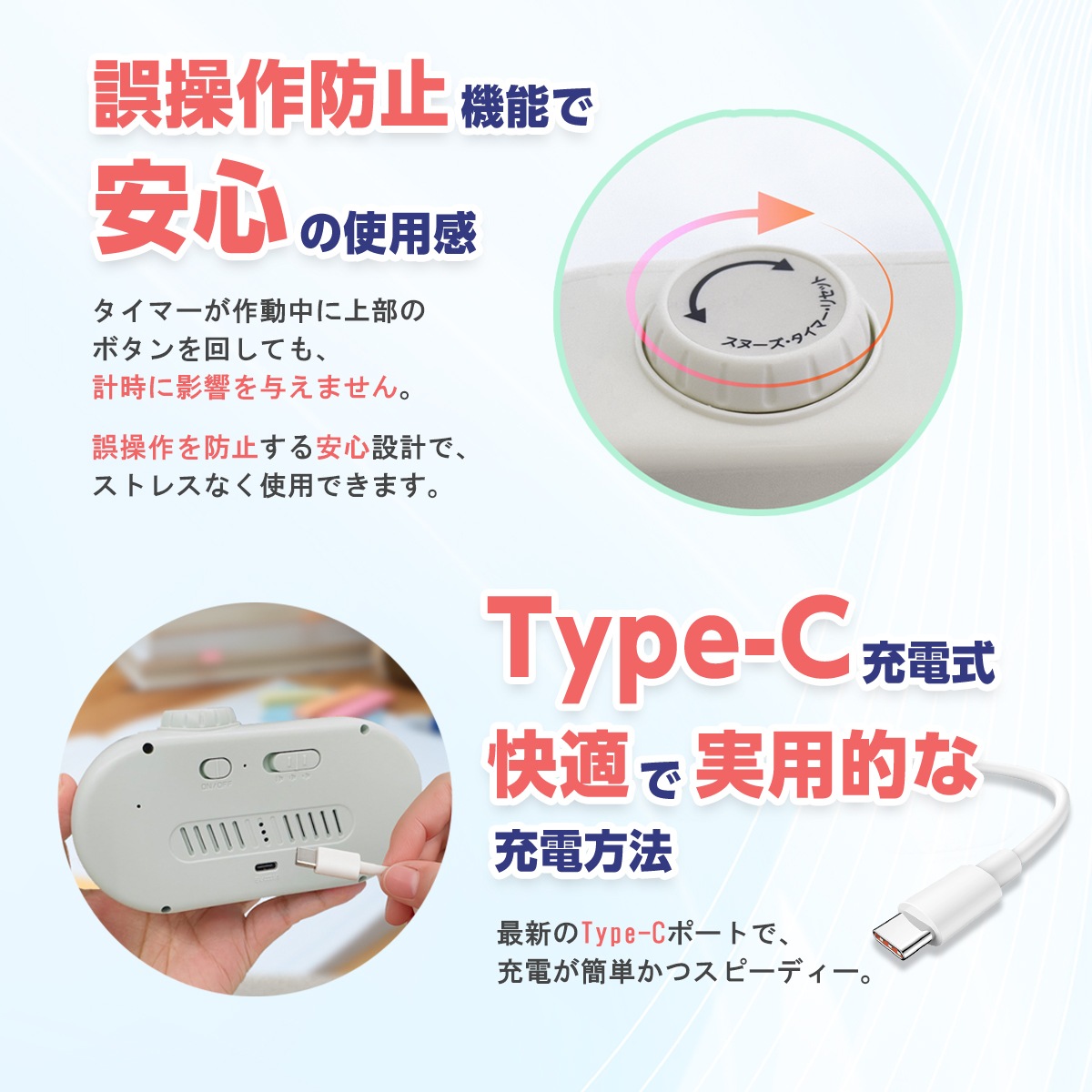 【Type-C充電】 繰り返し使用可能でエコなType-C充電。どこでも簡単充電。