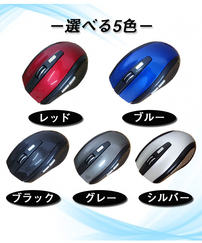 ワイヤレスマウス マウス ワイヤレス 無線マウス ワイヤレス マウス 光学式 2.4G 電池式 単四電池 高機能マウス 軽量 無線マウス 6ボタン パソコン PC 周辺機器 選べる5色 ブルー レッド シルバー グレー ブラック 小型 DPI機能 マウス