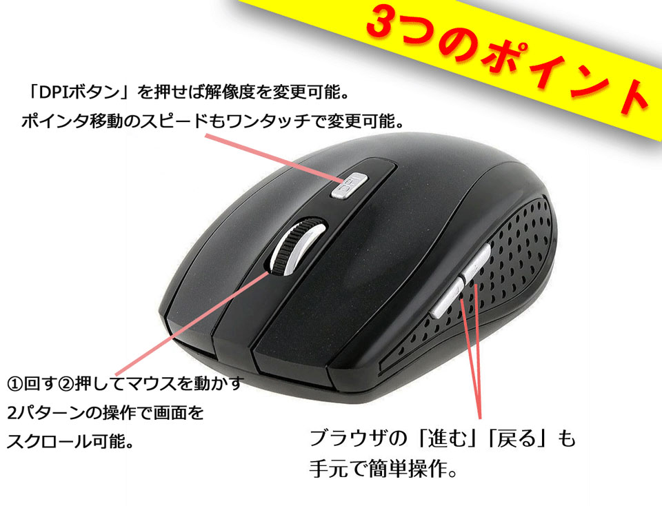 - ・6ボタンの多機能ワイヤレスマウスです。
