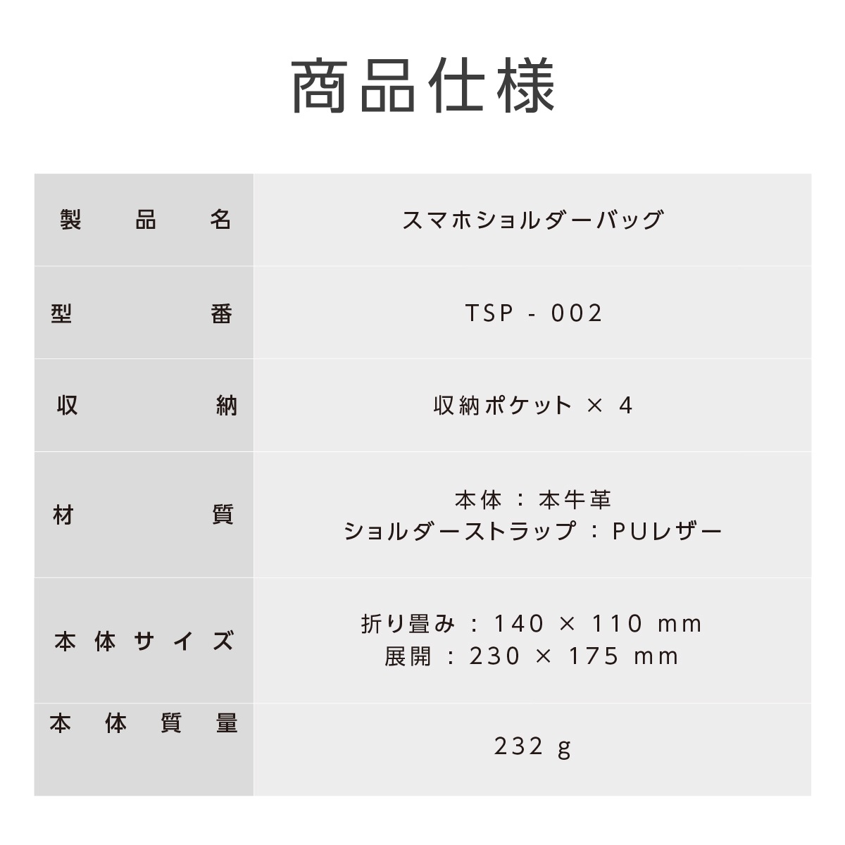 商品名称 スマホショルダーバッグ ブランド TOKAIZ 型番 TSP-002 商品詳細 収納:収納ポケット×4