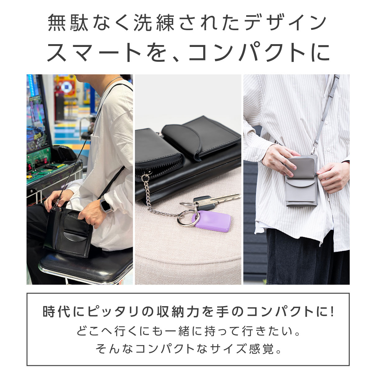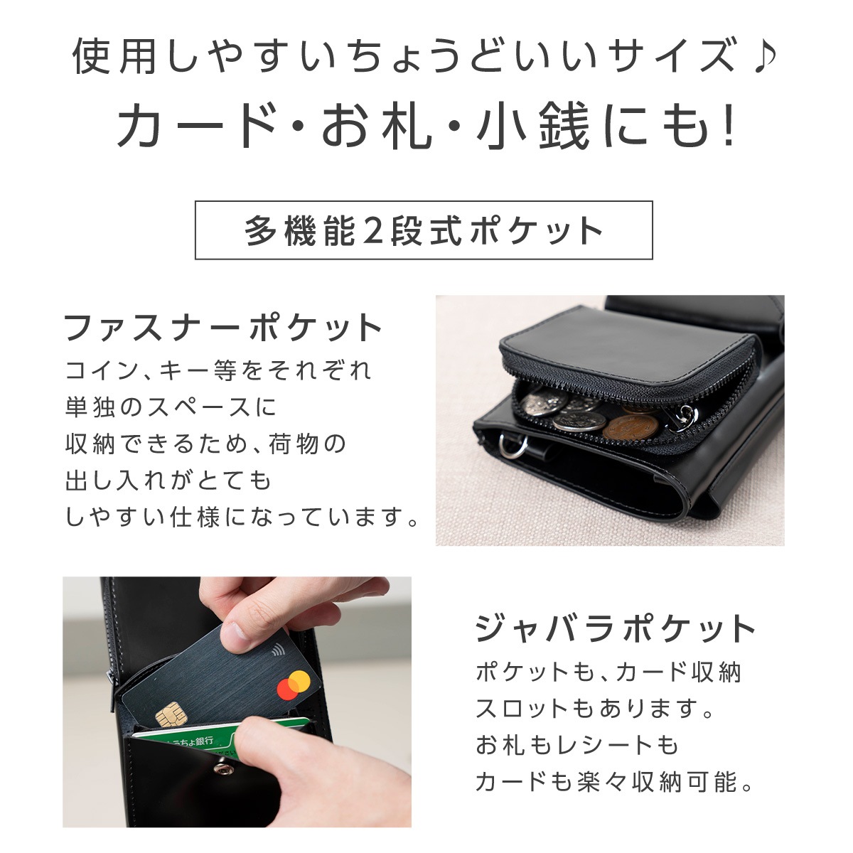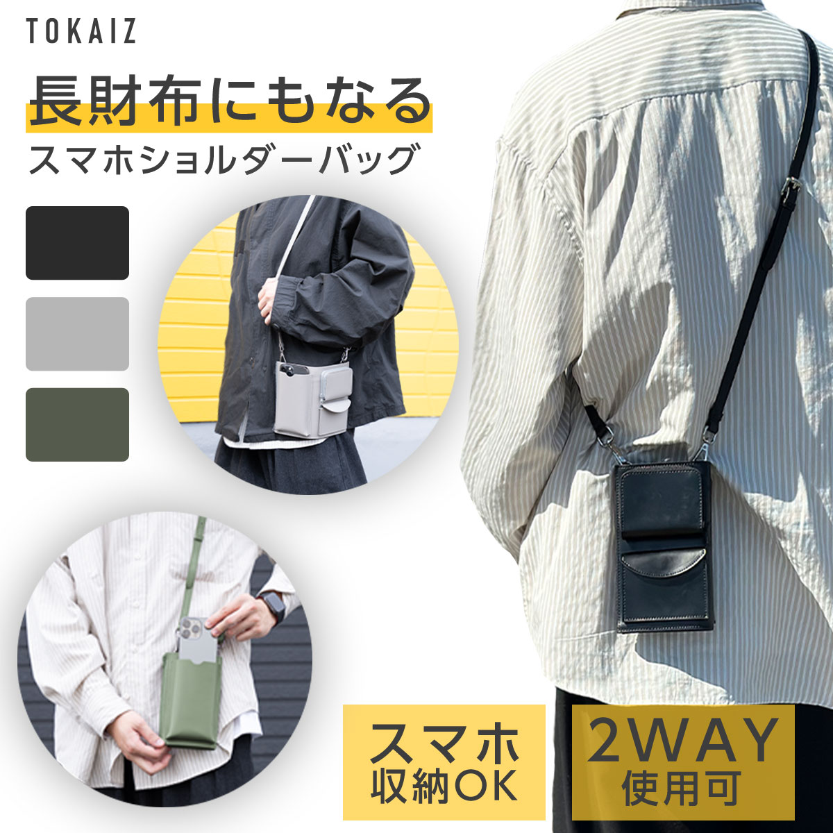 - ・【ストラップ取り付け部×3付】スマホショルダーバッグ・薄型ショルダーバッグ、2方法で使用可能!
