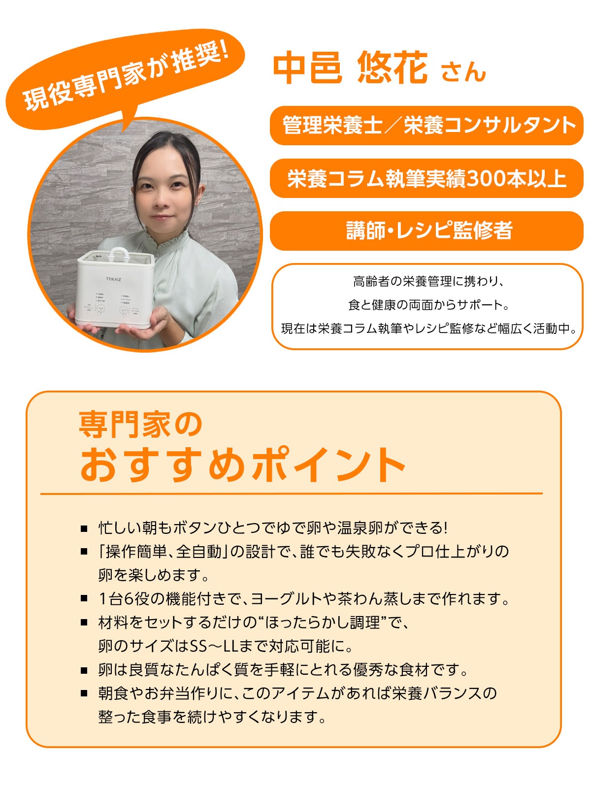 ・【多機能で食卓を豊かに】ゆで卵だけじゃない!茶碗蒸しやヨーグルトまで簡単に作れる。これ一台でバリエーション豊かなメニューを楽しめます。商品名称 多機能エッグクッカー ブランド TOKAIZ 型番 TCE-MEC01 商品仕様 定格電源:AC100 50/60Hz 3A