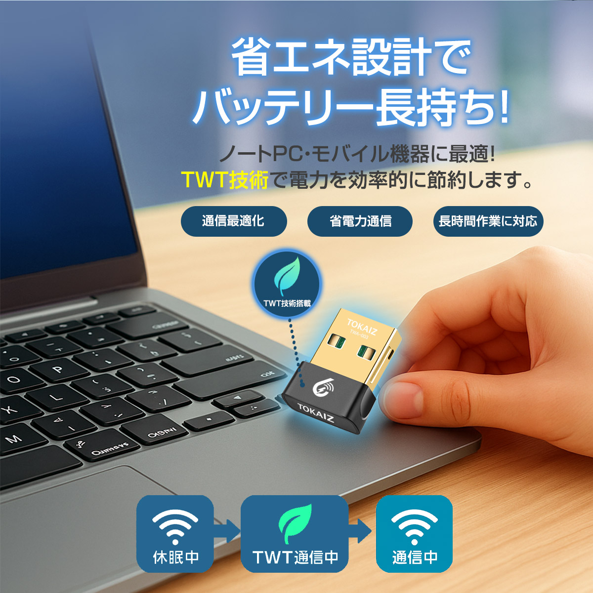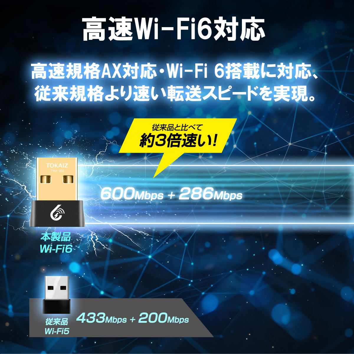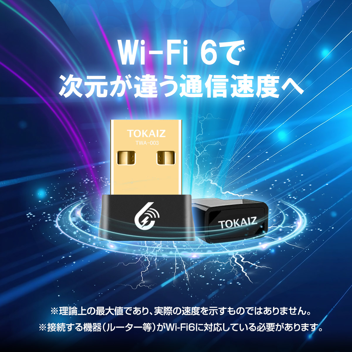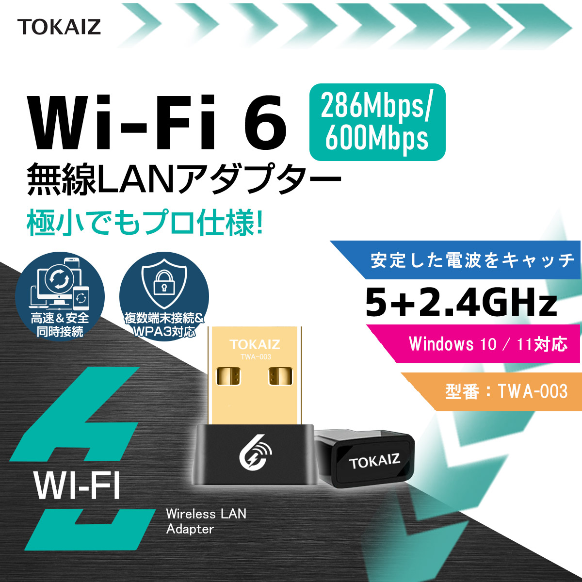 TOKAIZ公式 Wi-Fi6 無線LAN 子機 USB アダプター 小型 AX対応 MU-MIMO OFDMA搭載 高速通信 600+286Mbps ドライバー搭載 5GHz/2.4GHz デュアルバンド Windows 11/10対応 無線LANアダプター TWA-003 法人様対応