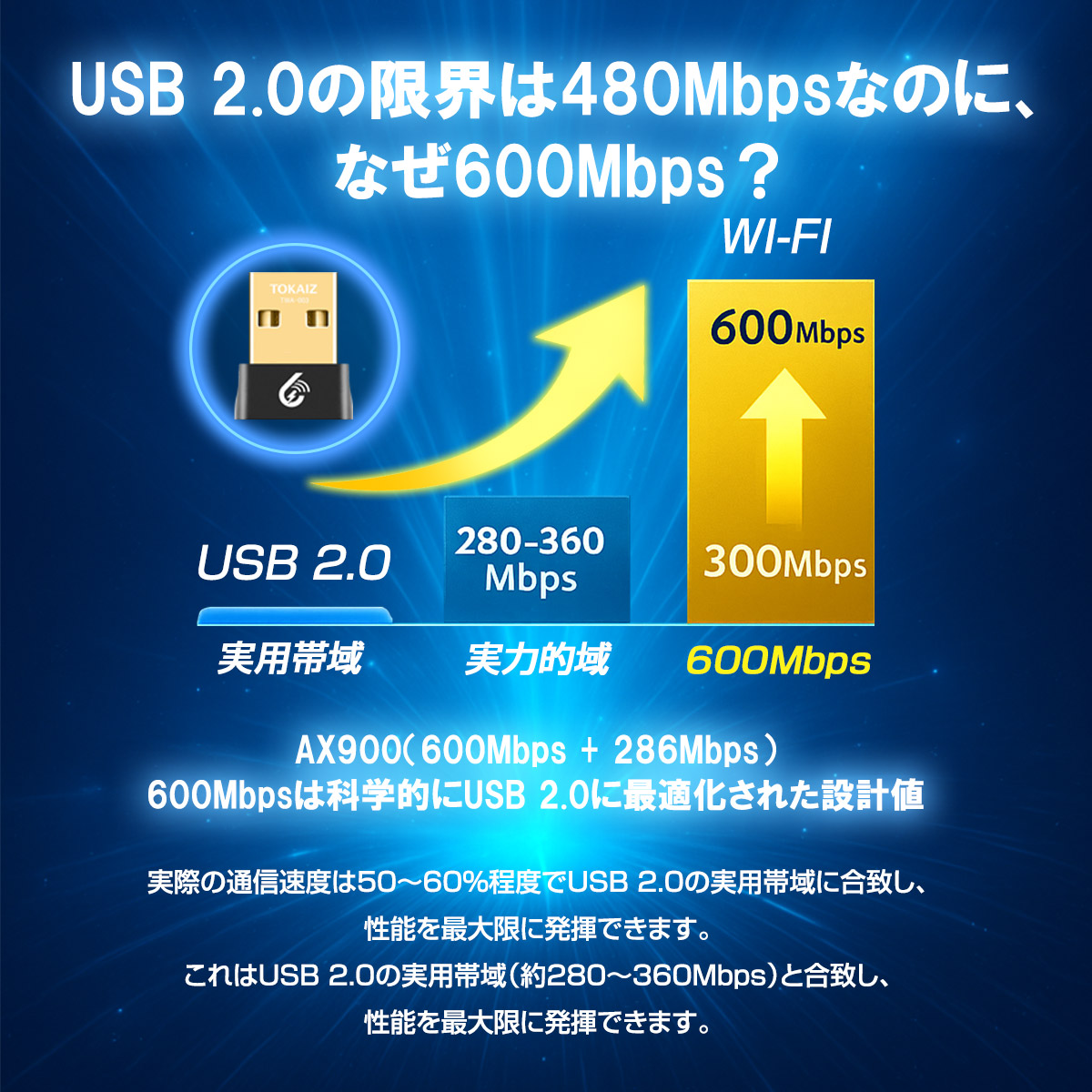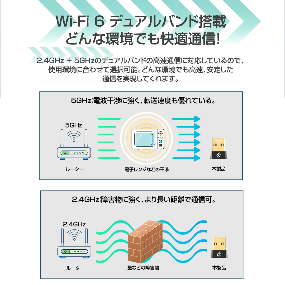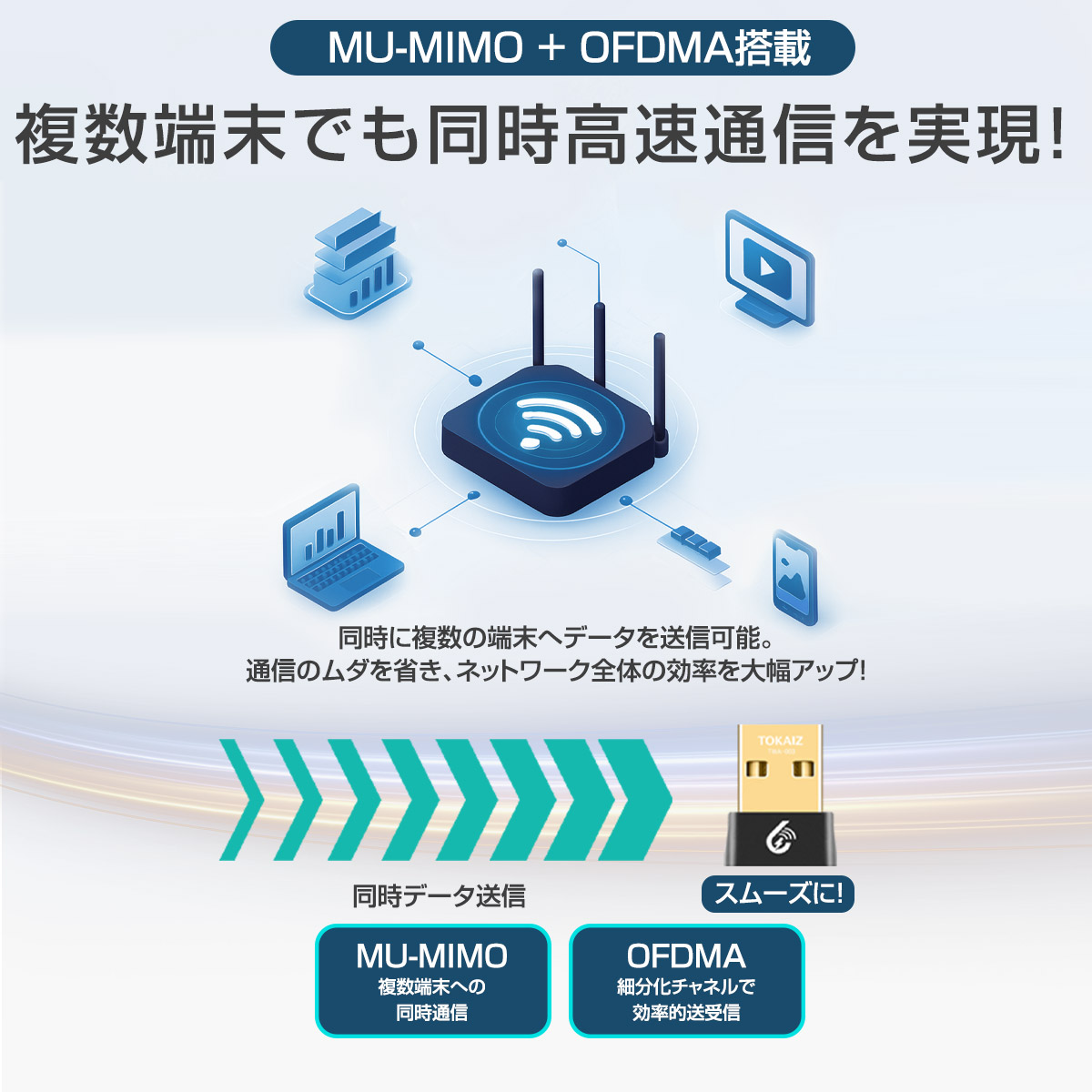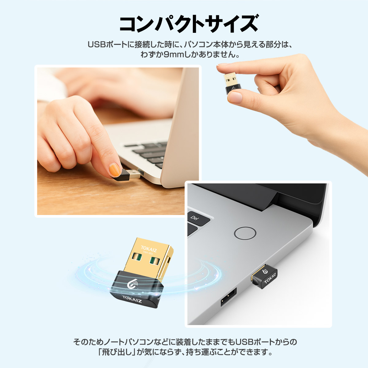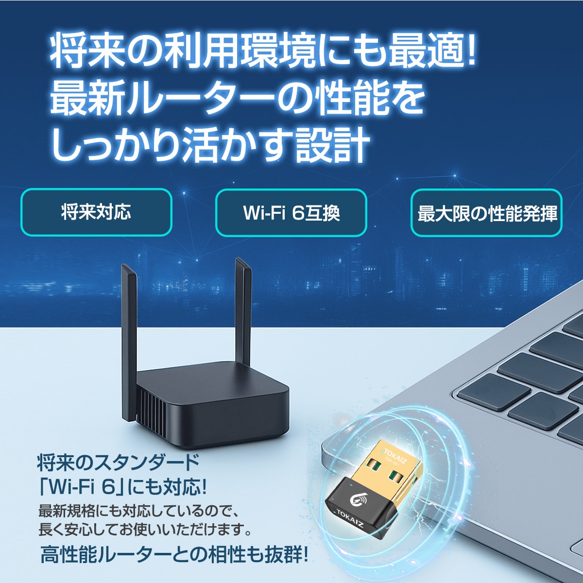TOKAIZ公式 Wi-Fi6 無線LAN 子機 USB アダプター 小型 AX対応 MU-MIMO OFDMA搭載 高速通信 600+286Mbps ドライバー搭載 5GHz/2.4GHz デュアルバンド Windows 11/10対応 無線LANアダプター TWA-003 法人様対応