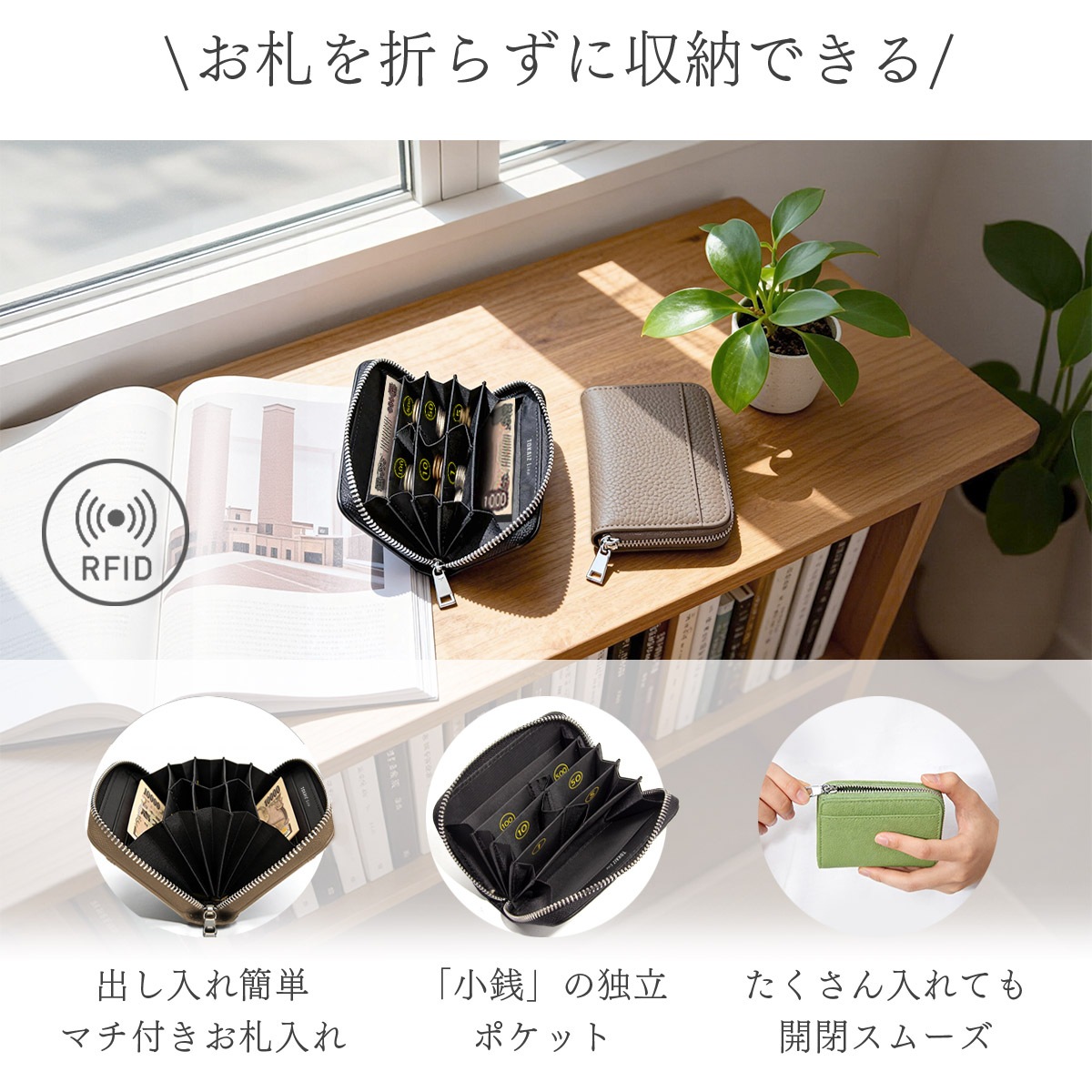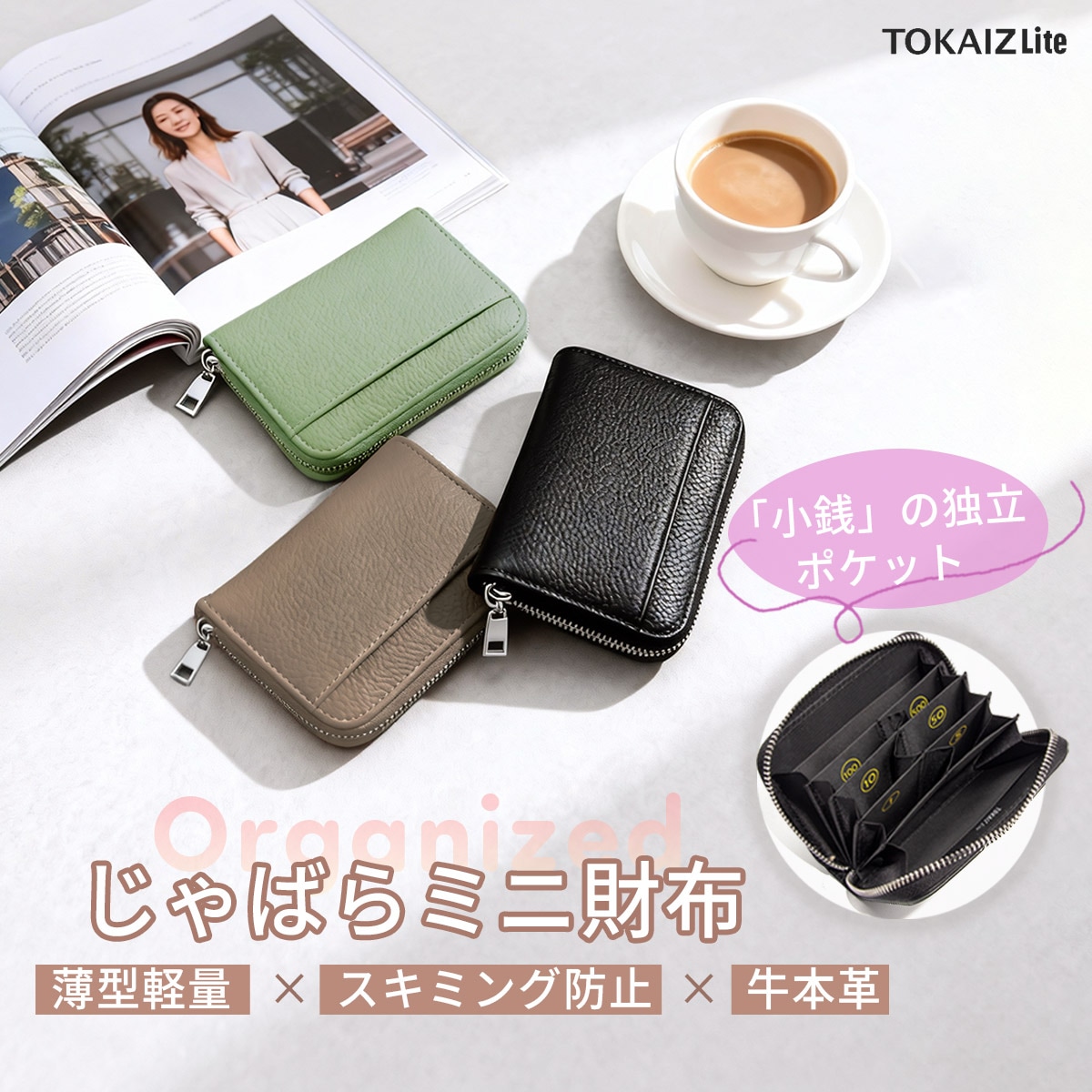 TOKAIZ Lite【コインポケット仕分け設計】ミニ財布 レディース 本革 じゃばら財布 大容量 カード12枚収納 小銭仕分け 外ポケット付き スキミング防止 かわいい ブランド コインソート 小銭入れ レシートも収納可能 プレゼント