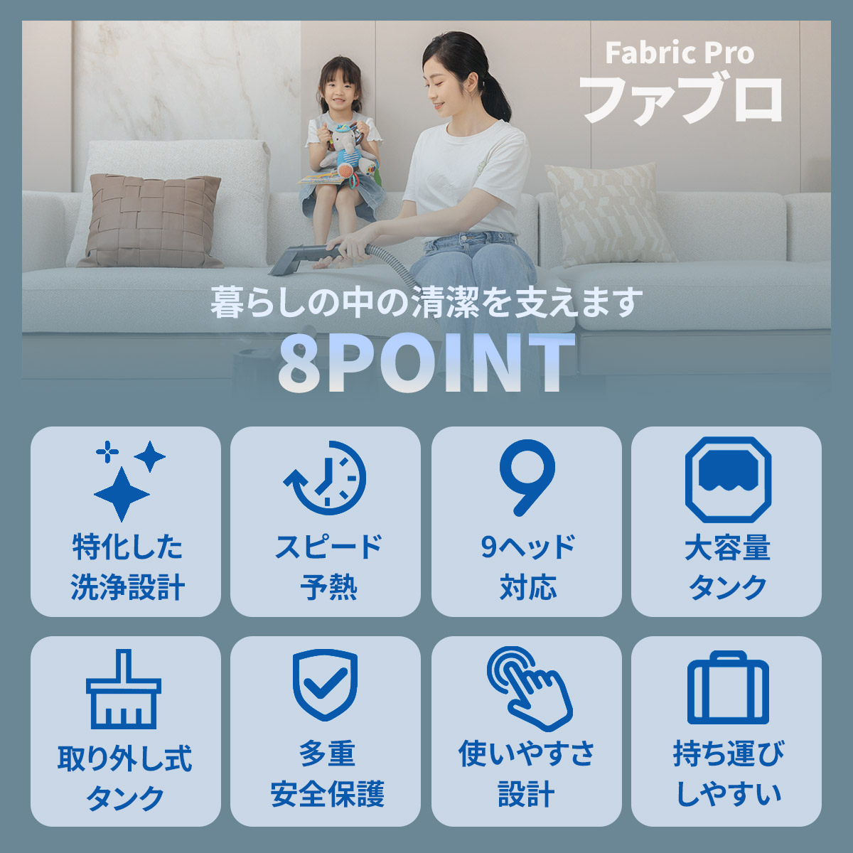 ・【18000Paの超強力吸引】業界トップクラスの吸引力で、浮かせた汚れを水分ごと一気に回収。驚きの速乾性を実現しました。