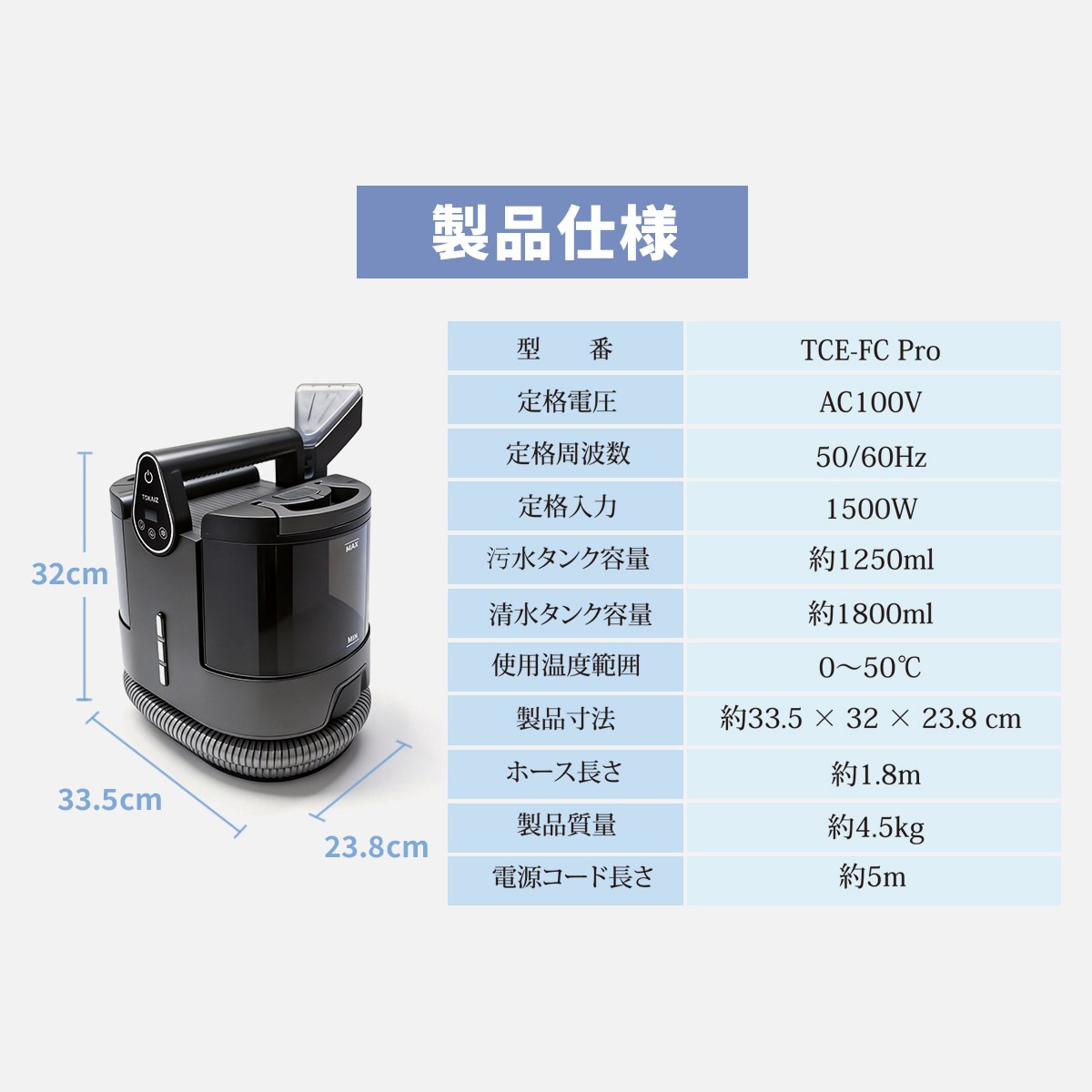商品名称 ファブリッククリーナープロ ブランド TOKAIZ 型番 TCE-FC Pro 商品詳細 定格電圧:AC100V 50/60Hz